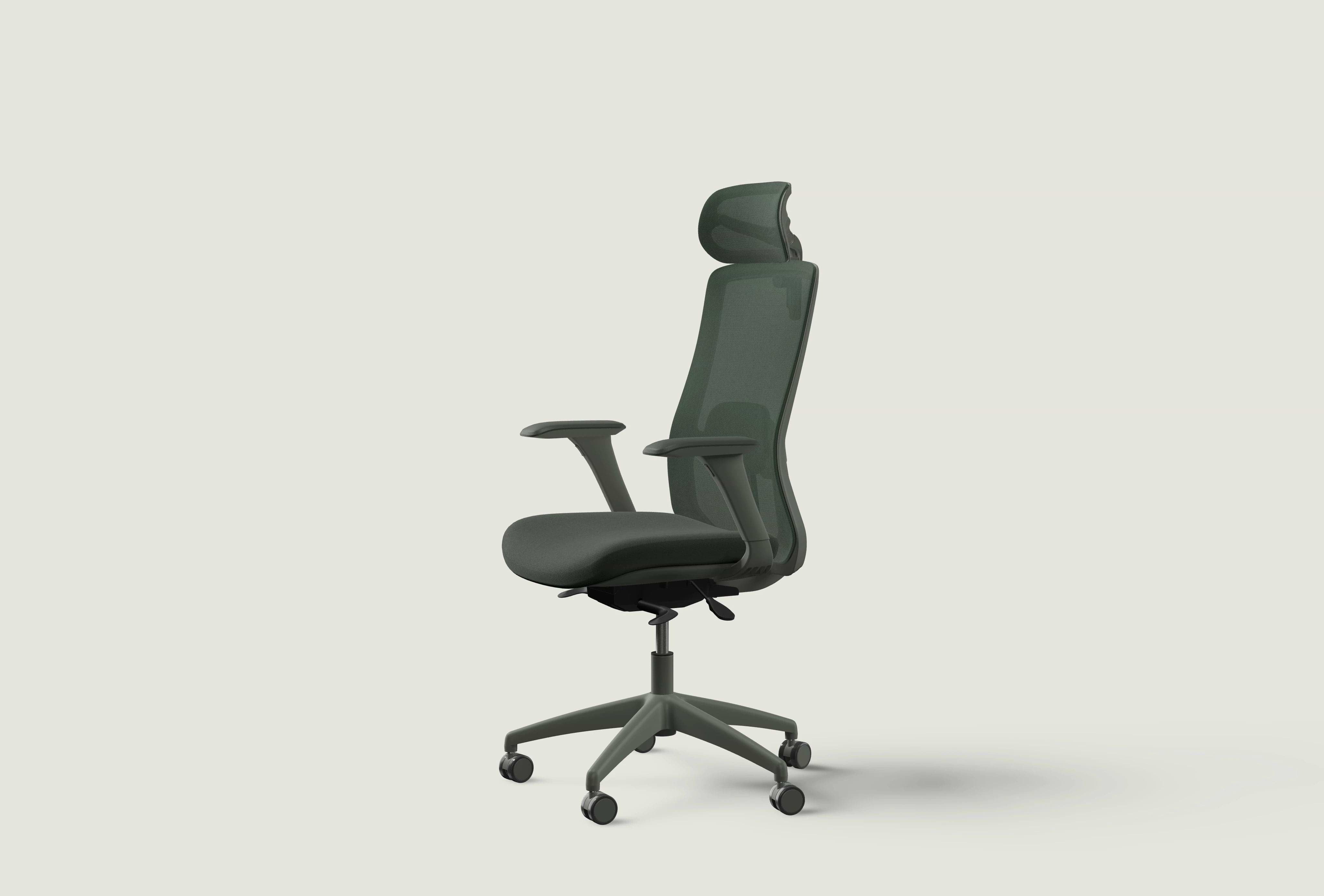 Unsere ergonomischen Bürostühle gibt es in mehreren modernen Farben – von Hellgrau über Olivgrün und Mitternachtsblau bis hin zu klassischem Schwarz. Jeder Stuhl sieht im Homeoffice genauso gut aus wie im Büro. Wähl die Farbe, die zu deinem Raum passt – um den Komfort kümmern wir uns.