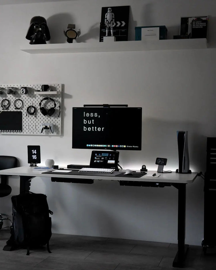 Verpasse deinem Arbeitsbereich ein Makeover - halte das Wichtigste griffbereit, reduziere die Belastung des Nackens, verwalte den Kabelsalat und - falls noch nicht geschehen - nutze kratz- und spritzfeste Oberflächen.