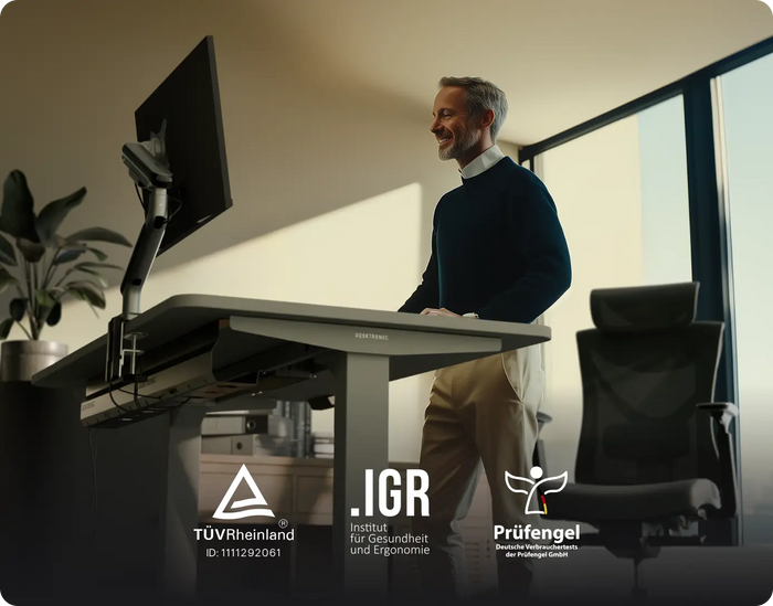 Wenn es um dein Wohlbefinden geht, machen wir keine Abstriche. Wir feintunen jeden Schreibtisch, jeden Stuhl und jedes Zubehör so lange, bis es unsere strengen Standards erfüllt - und deine. Offensichtlich stimmen uns viele zu - mit über 10.000 5-Sterne-Bewertungen siehst du, warum so viele Desktronic als ihre Go-To ergonomische Marke vertrauen.