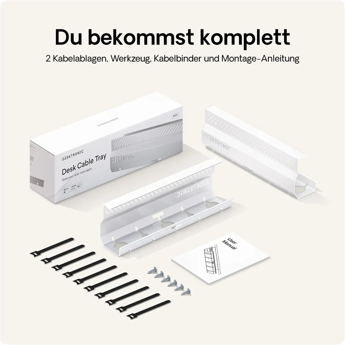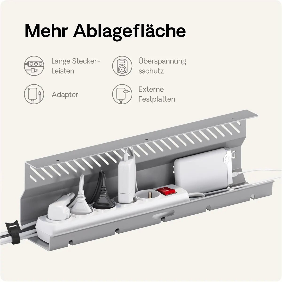 Der Kabelkanal wird für seine robuste Stahlkonstruktion, seine großzügige Kapazität und seine intelligenten Ausschnitte geschätzt, die das Managen von Kabeln vereinfachen. Rezensenten betonen den ablenkungsfreien Look, während er Kabelbinder und Adapter sicher hält. Langlebig und einfach zu installieren, mit 2 Jahren Garantie, ist er eine smarte Lösung für ein aufgeräumtes Setup.