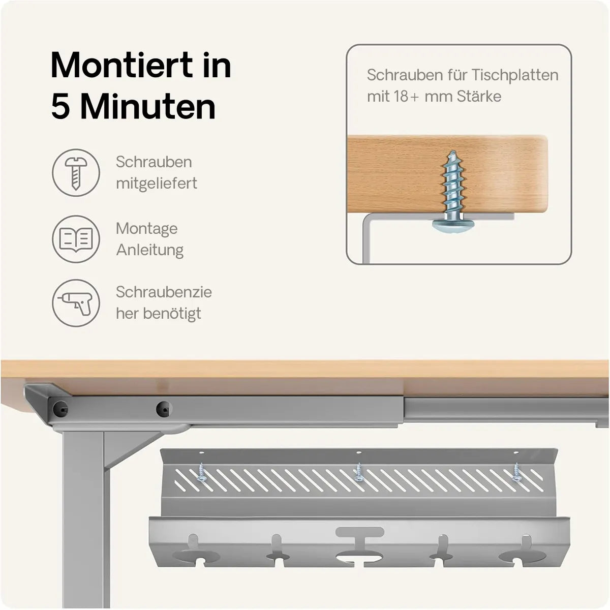 Ja, unsere Kabelkanäle sind mit Schreibtischen verschiedener Typen kompatibel, solange die Tischplatte mindestens 18 mm dick ist. Diese Dicke ist häufig bei kostengünstigeren Schreibtischen zu finden.