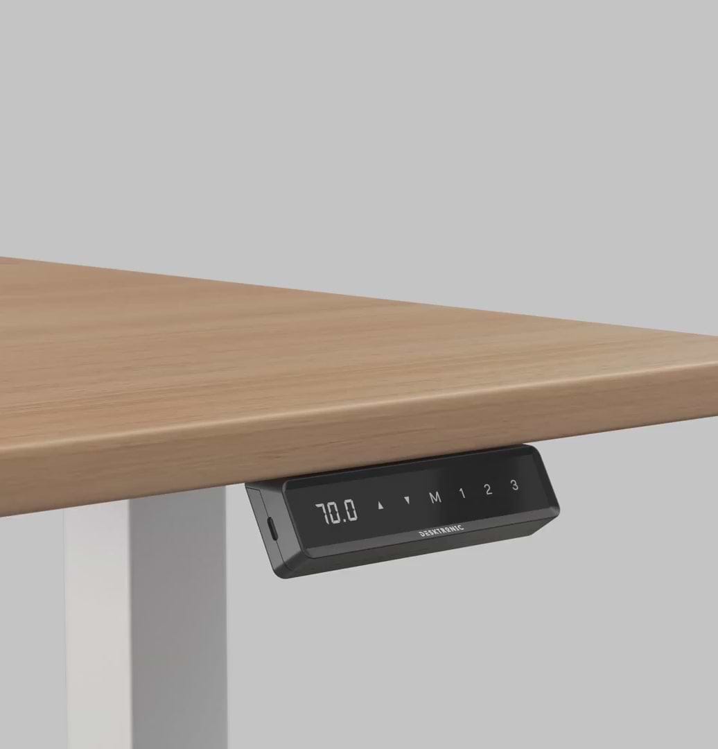Die höhenverstellbaren Schreibtische von Desktronic bieten bequeme Einstellungsmöglichkeiten. Ausgestattet mit einem elektronischen Touchscreen-Controller, der die Höhe in Zentimetern anzeigt, ermöglichen diese Schreibtische ein müheloses Anheben oder Absenken mithilfe eines eingebauten Motors. Zusätzlich verfügen sie über drei vollständig programmierbare Höhenvoreinstellungen. Dadurch erreichst du deine bevorzugte Schreibtischposition mit nur einer Berührung.