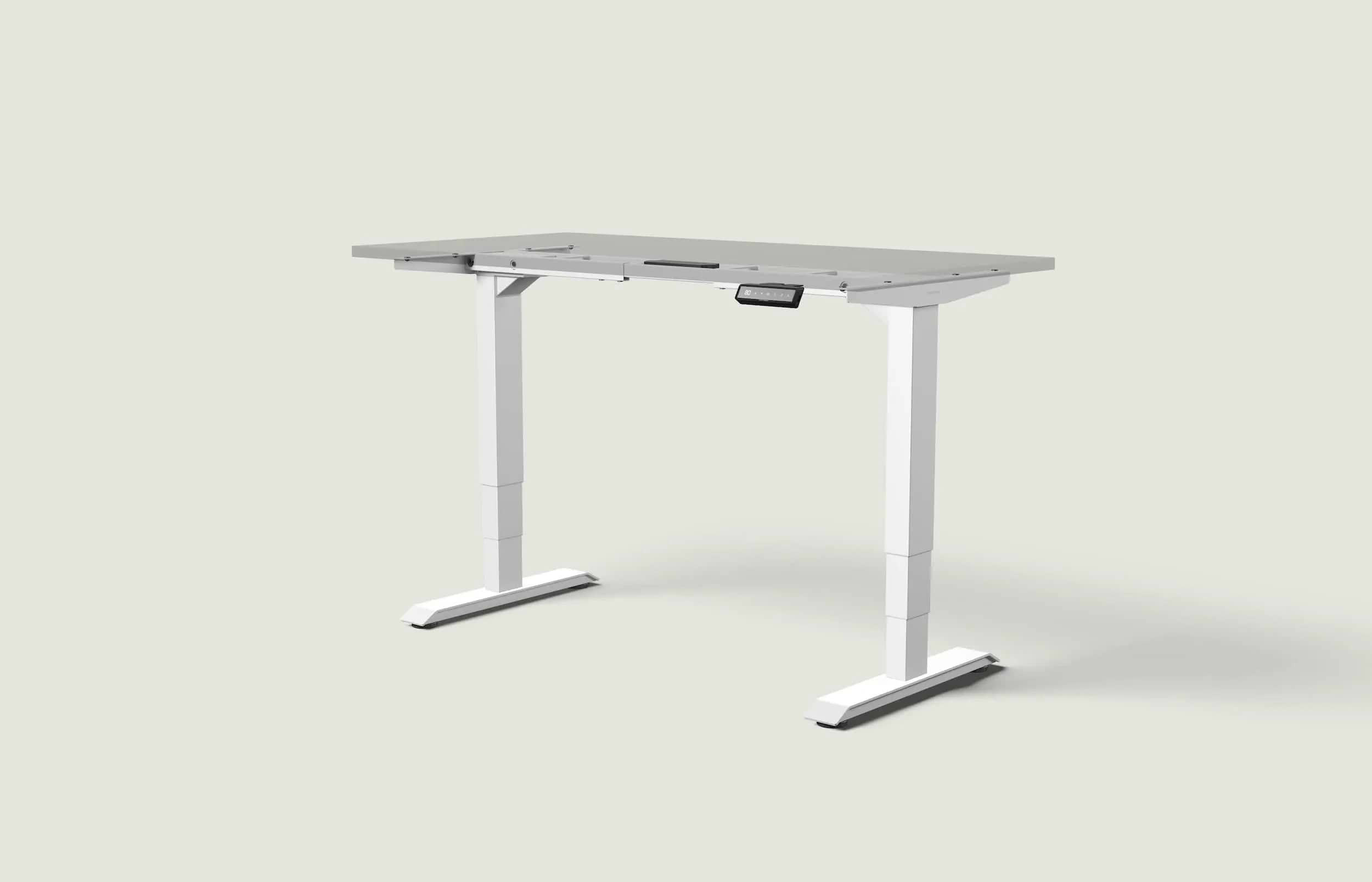 Die starken Metallbeine und der verstärkte Rahmen dieses Tisches sorgen für Stabilität – selbst bei maximaler Höhe und bei den größten Tischplatten. Dank des breiteren und dickeren Rahmens als der Marktstandard bleibt dieser Tisch auch bei intensivster Arbeit stabil.