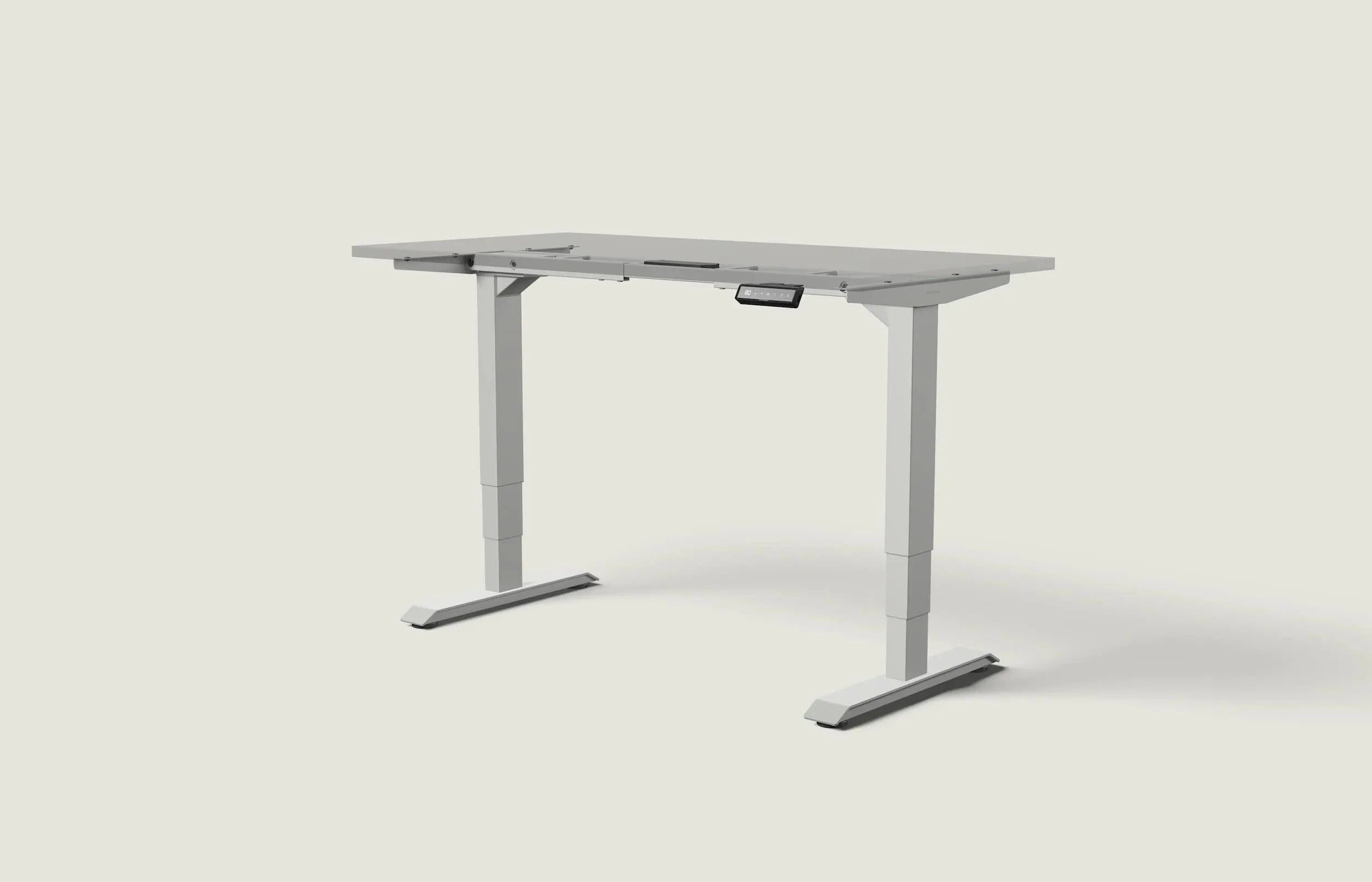 Die starken Metallbeine und der verstärkte Rahmen dieses Tisches sorgen für Stabilität – selbst bei maximaler Höhe und bei den größten Tischplatten. Dank des breiteren und dickeren Rahmens als der Marktstandard bleibt dieser Tisch auch bei intensivster Arbeit stabil.