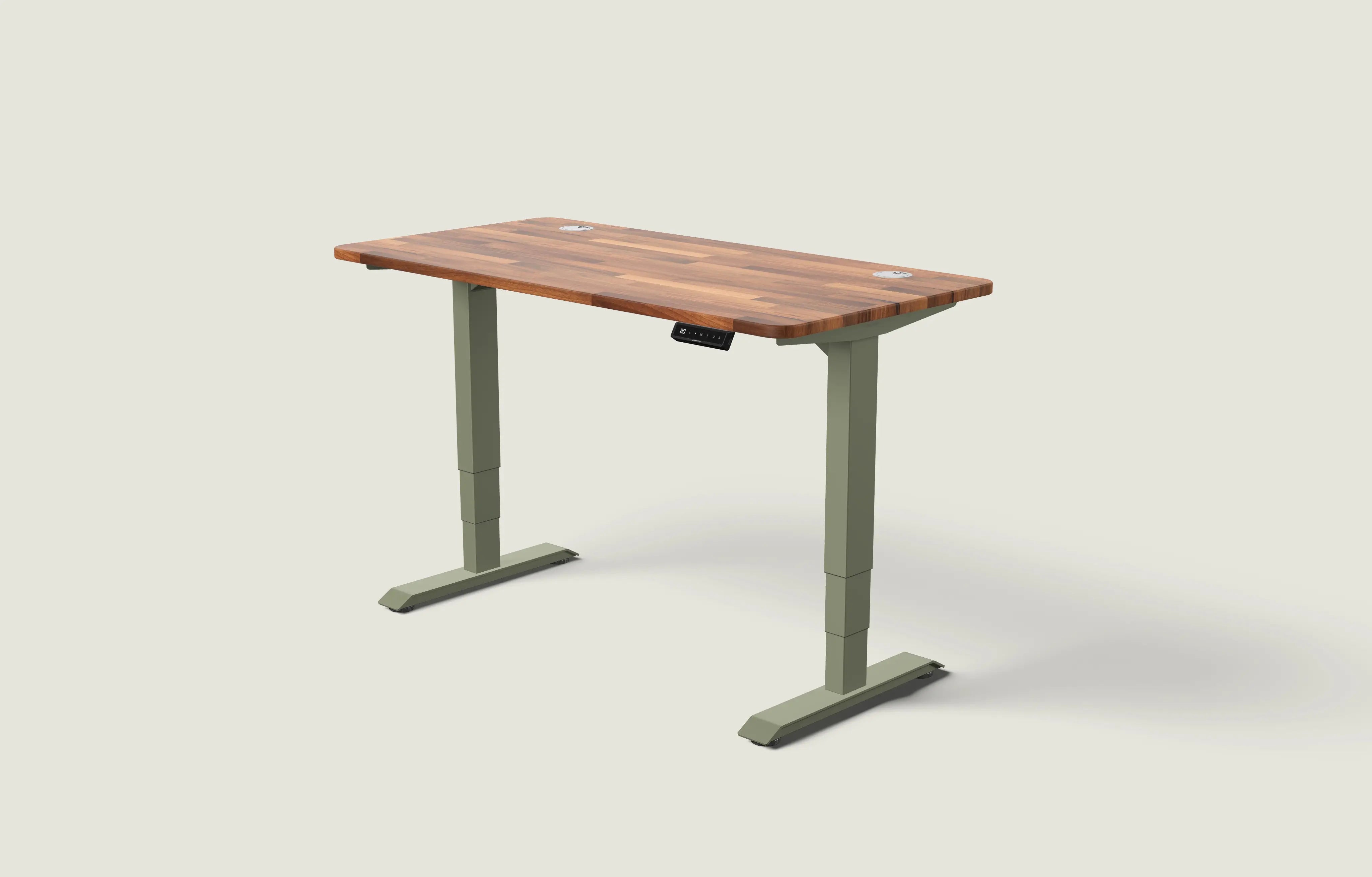 Die ideale Schreibtischhöhe variiert von Person zu Person. Aber als allgemeine Richtlinie gilt: Dein Schreibtisch sollte in Ellbogenhöhe sein, wenn du sitzt. Die Oberkante deines Monitors sollte auf Augenhöhe sein, um Belastungen zu vermeiden. Im Stehen sollte dein Schreibtisch mit deinen gebeugten Ellbogen eine Linie bilden.