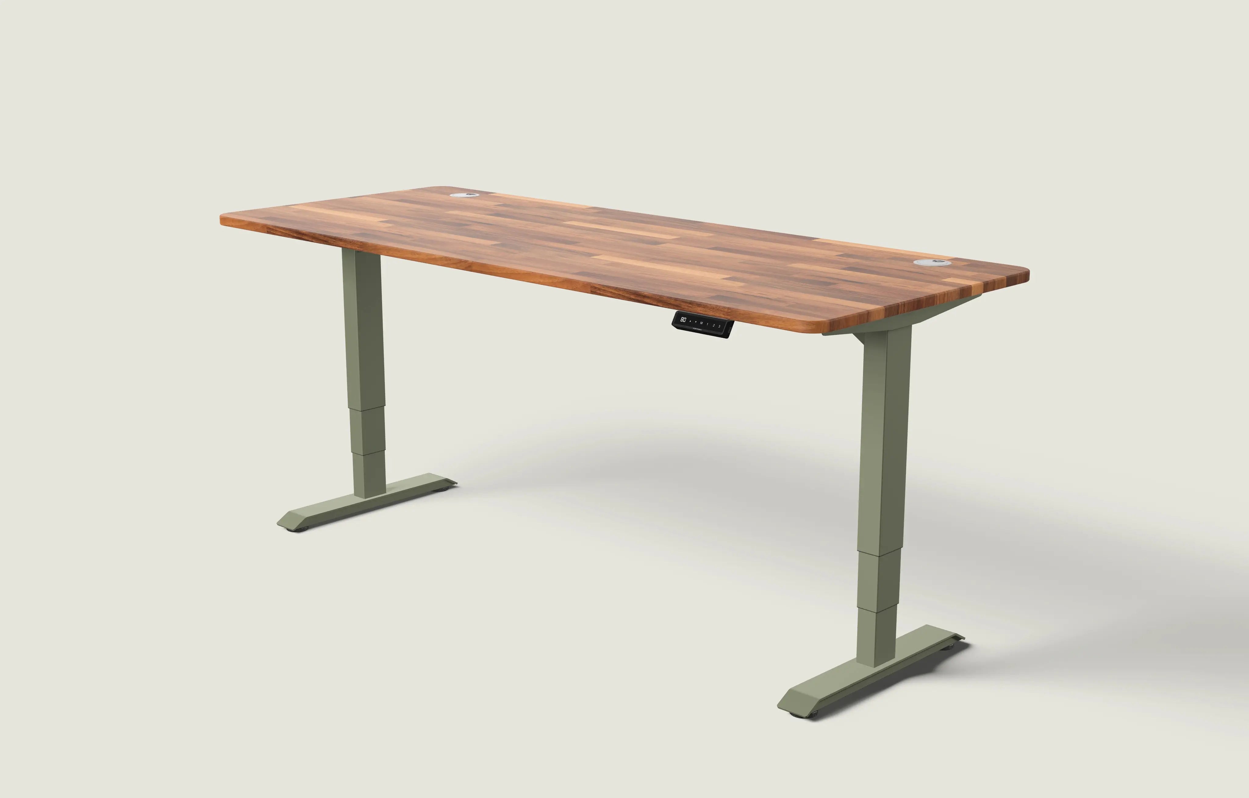 Die ideale Schreibtischhöhe variiert von Person zu Person. Aber als allgemeine Richtlinie gilt: Dein Schreibtisch sollte in Ellbogenhöhe sein, wenn du sitzt. Die Oberkante deines Monitors sollte auf Augenhöhe sein, um Belastungen zu vermeiden. Im Stehen sollte dein Schreibtisch mit deinen gebeugten Ellbogen eine Linie bilden.