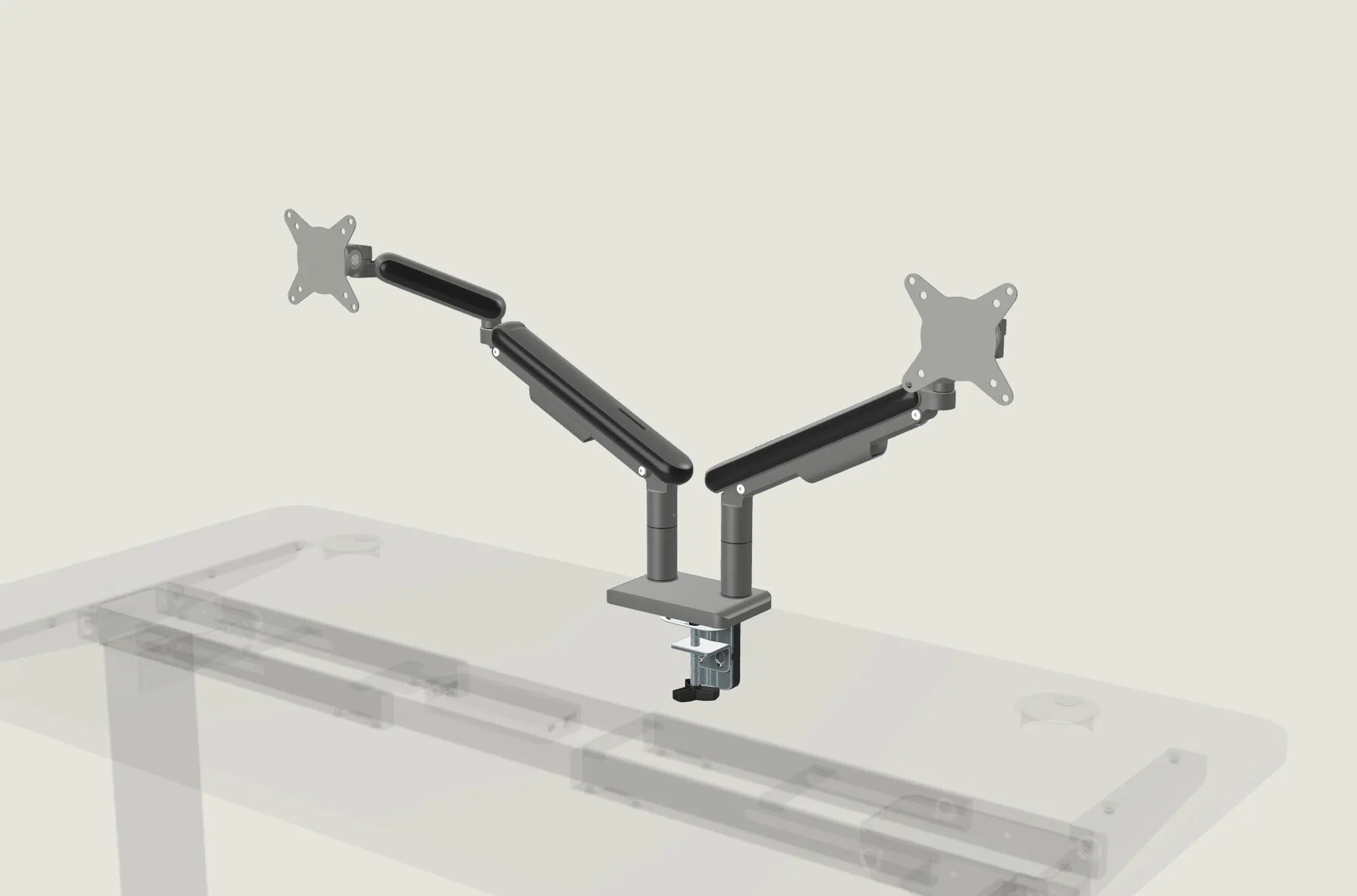 Die Monitorhalter bieten eine 360°-Drehung für einfaches Wechseln zwischen Quer- und Hochformat. Ihre verstellbaren Arme sorgen für optimalen Betrachtungskomfort und reduzieren die Belastung auf den Nacken.