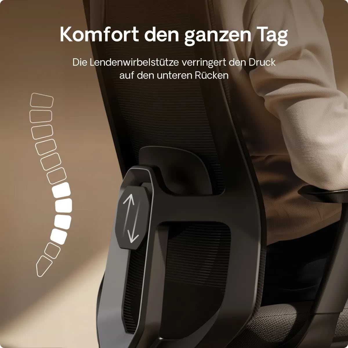 Der breite Sitz ist geformt, um dich zu unterstützen. Er verteilt den Druck gleichmäßig, um Belastungen zu reduzieren. Du wirst den Unterschied bei längeren Schreibtisch-Sessions bemerken und dich unterstützt und komfortabel fühlen.