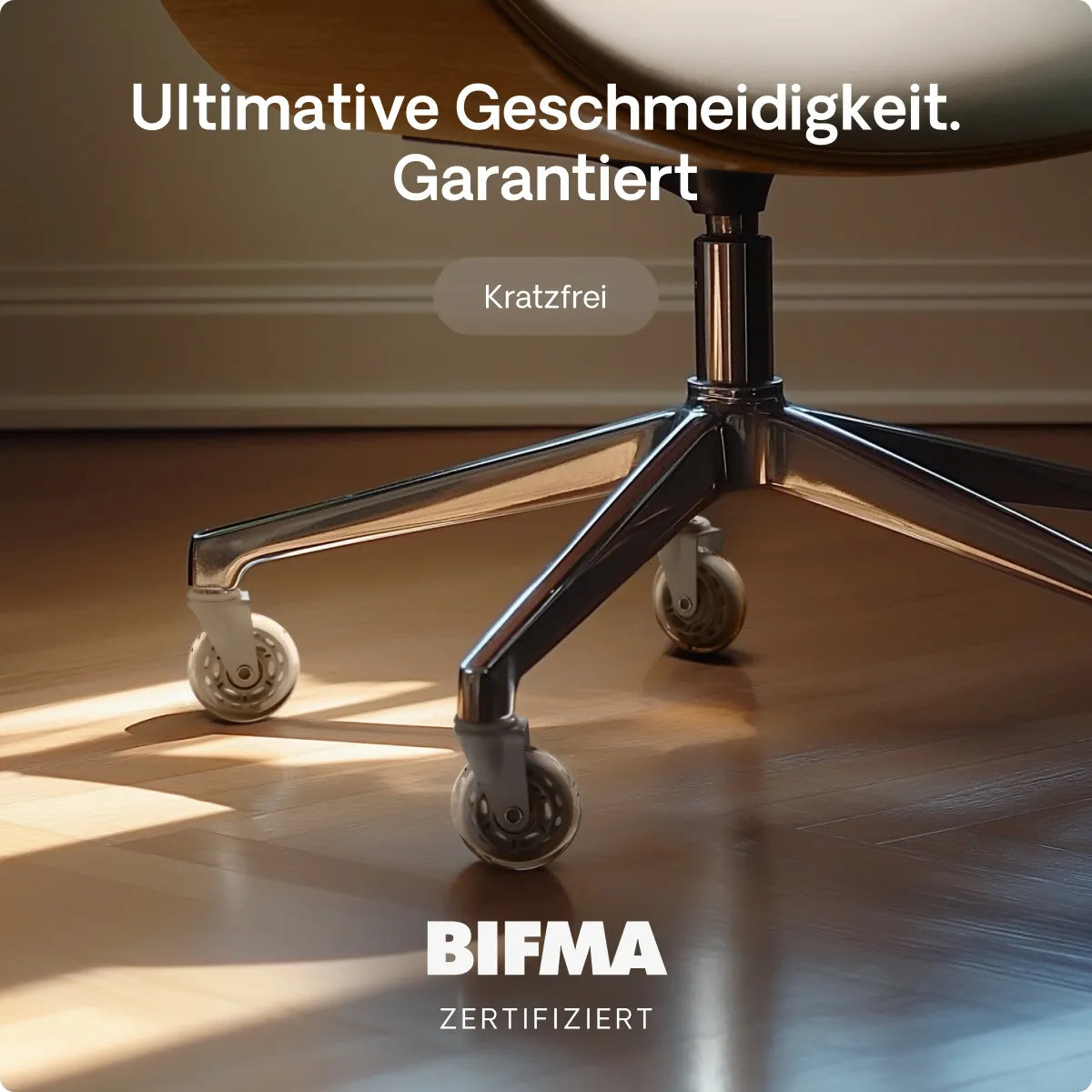 Zeit, sich von deiner Stuhlmatte zu trennen! Unsere Lenkrollen sind so konstruiert, dass sie auf allen Oberflächen reibungslos rollen - ob bei Hartholz, Teppich, Fliesen oder anderen Bodenbelägen. Sie sind völlig kratzfrei, damit du Geld sparst und deinen Boden schonst. Eine Win-Win-Situation.