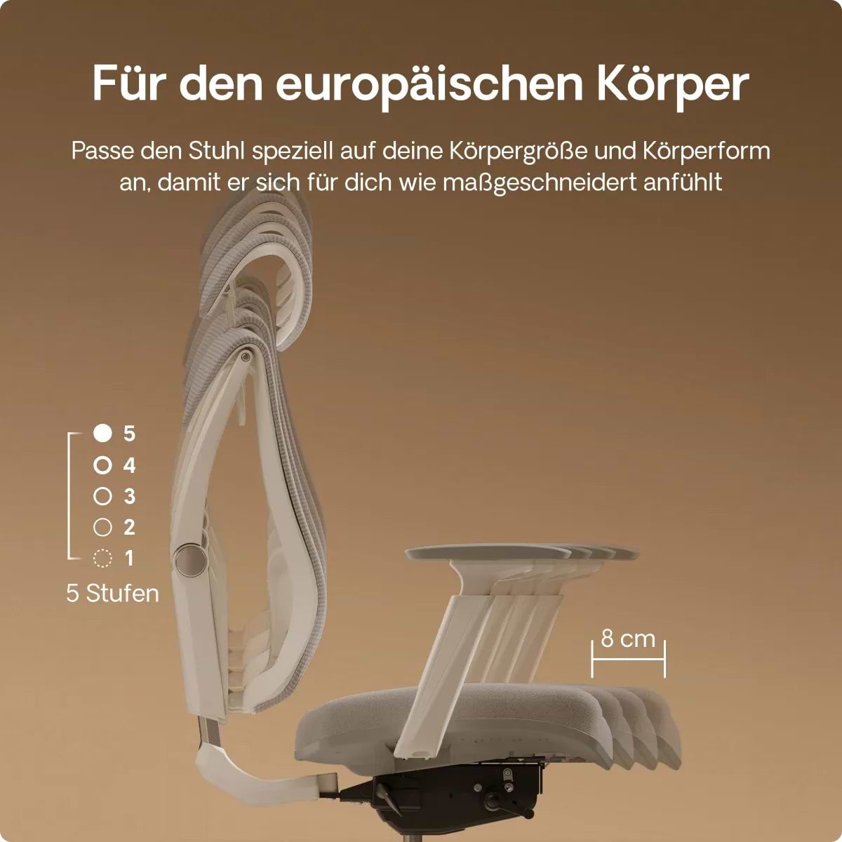 Dieser Stuhl wurde entwickelt, um durch genaue Berücksichtigung der menschlichen Anatomie eine korrekte Körperhaltung zu fördern. Jedes kleine Detail, jeder Winkel und jede Form wurde sorgfältig durchdacht, um die verursachten Beschwerden durch langes Sitzen zu lindern.