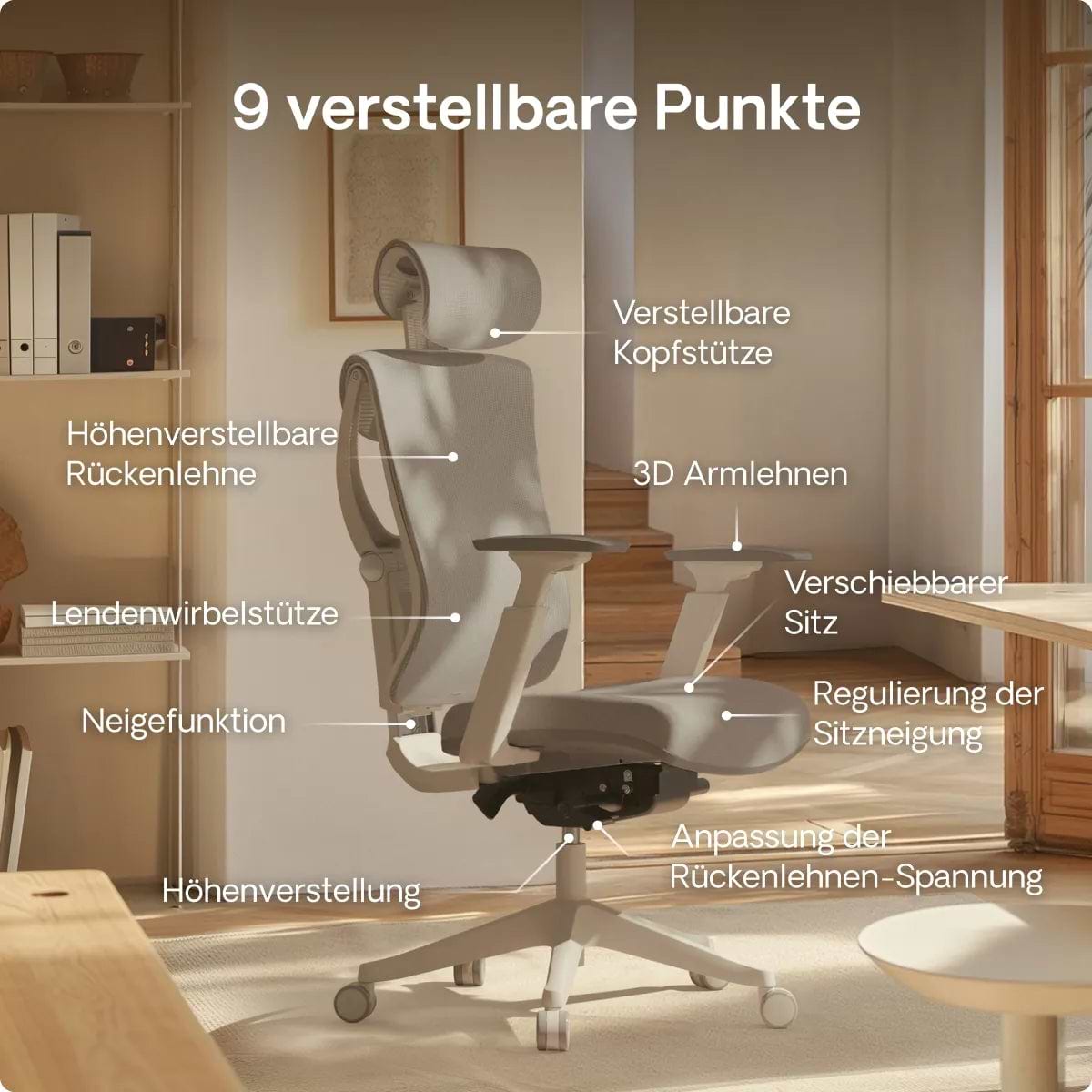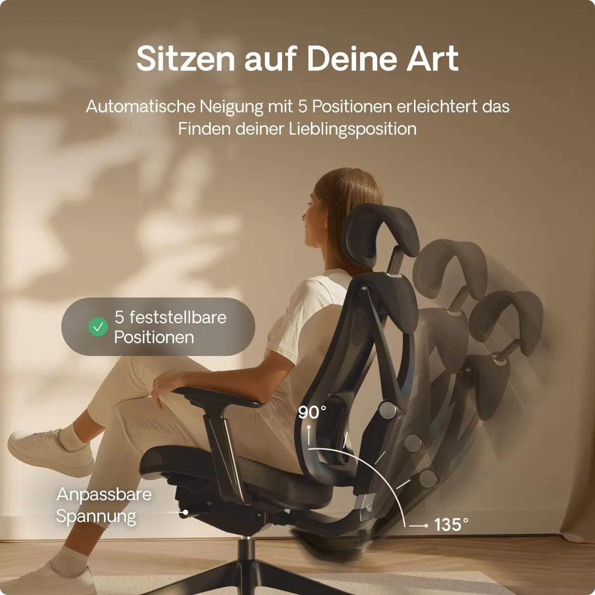 Entworfen mit Fokus auf bequemes und unterstützendes Sitzen, das eine gute Körperhaltung fördert. Er hält den Körper in einer natürlichen Position, reduziert das Risiko von Muskelproblemen und verbessert das allgemeine Wohlbefinden.