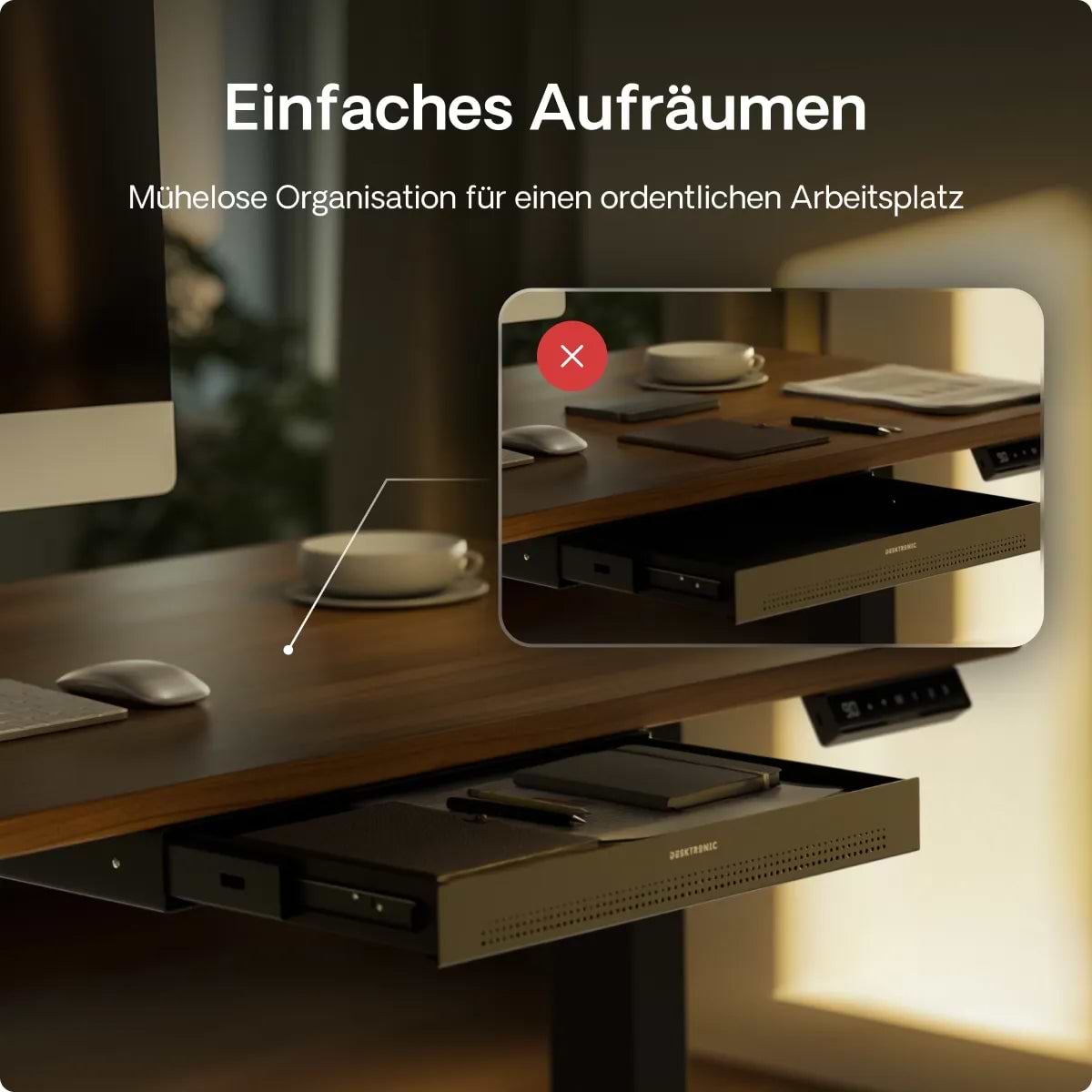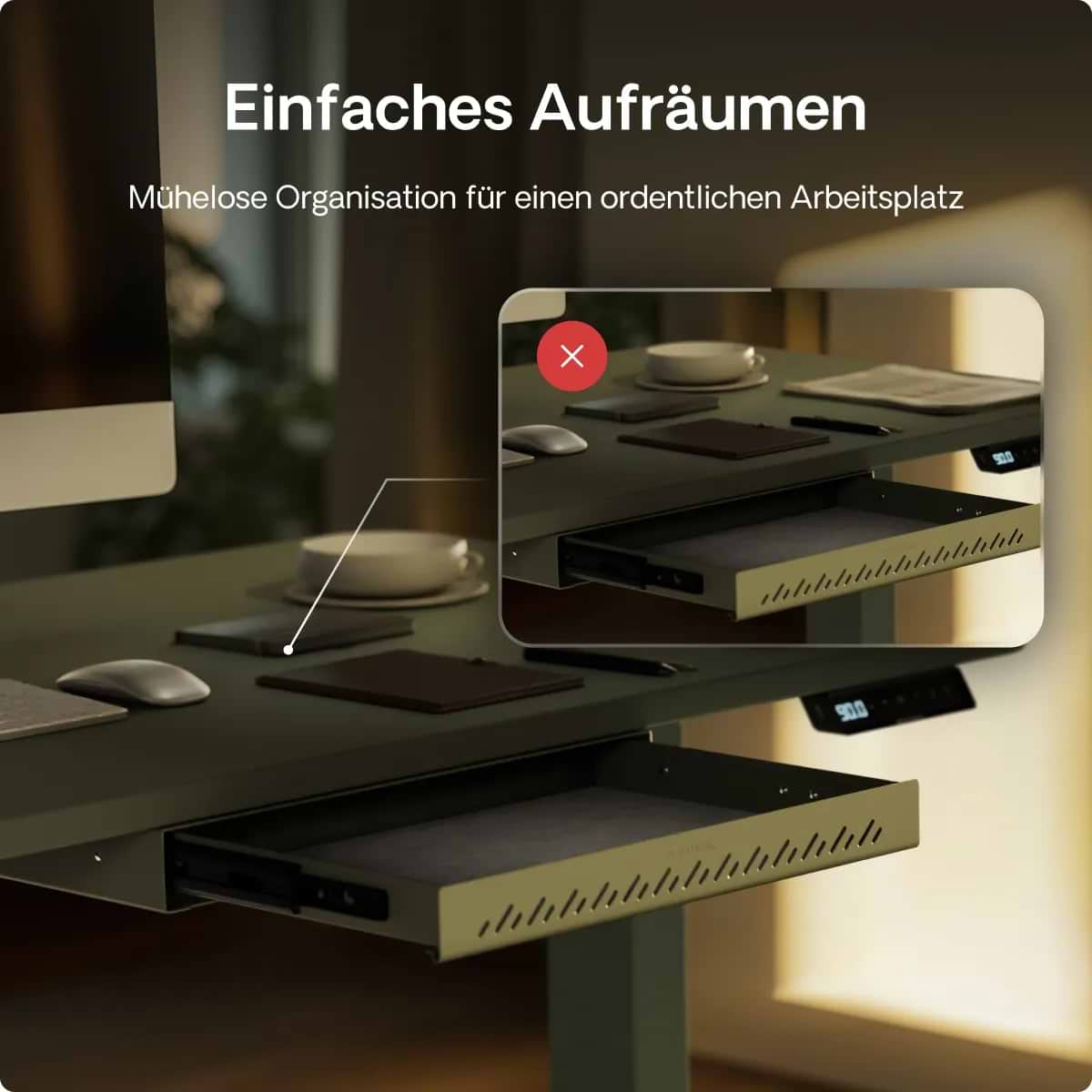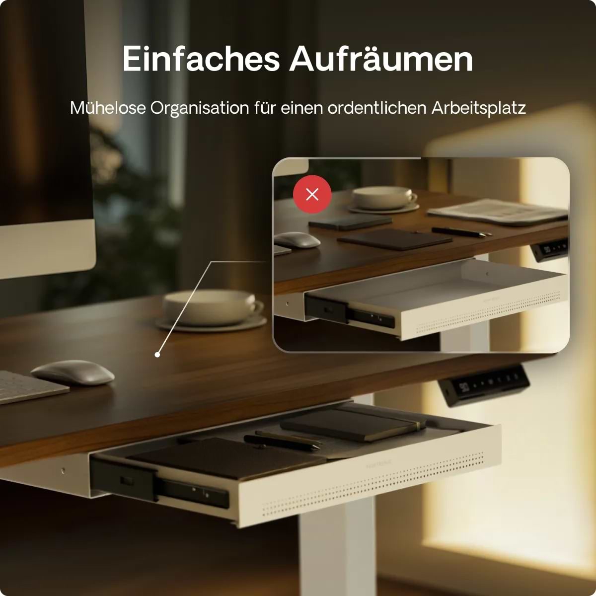 Die Schreibtischschublade wird für ihr schlankes Profil, ihre solide Metallkonstruktion und ihre sanften Schienen gelobt, die sich jedes Mal geräuschlos öffnen. Käufer schätzen den Platz, den sie für Dokumente und wichtige Utensilien schafft, wodurch der Schreibtisch aufgeräumt und übersichtlich bleibt. Langlebig und stilvoll, mit einer 2-jährigen Garantie, ist sie eine große Veränderung, die die tägliche Arbeit erleichtert.
