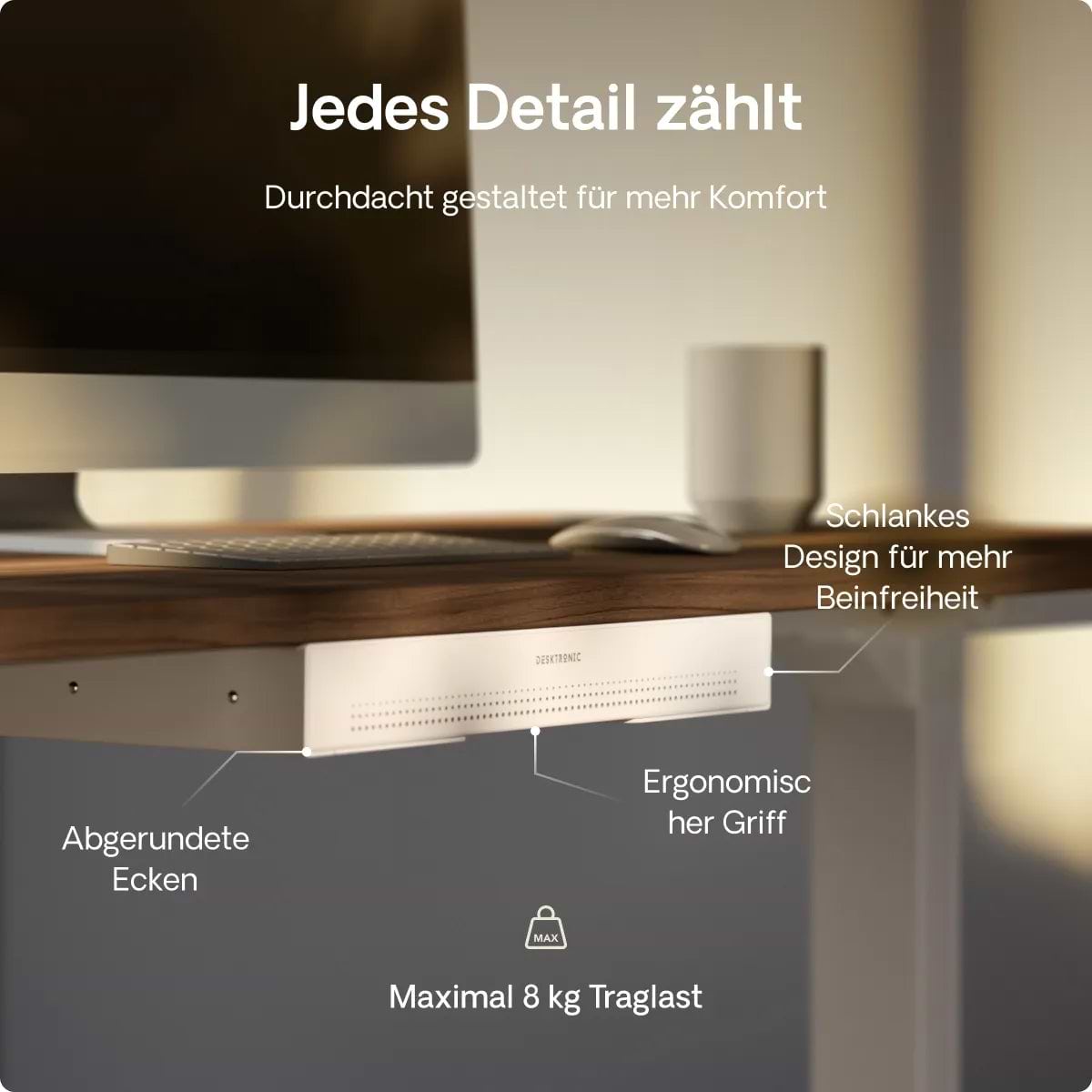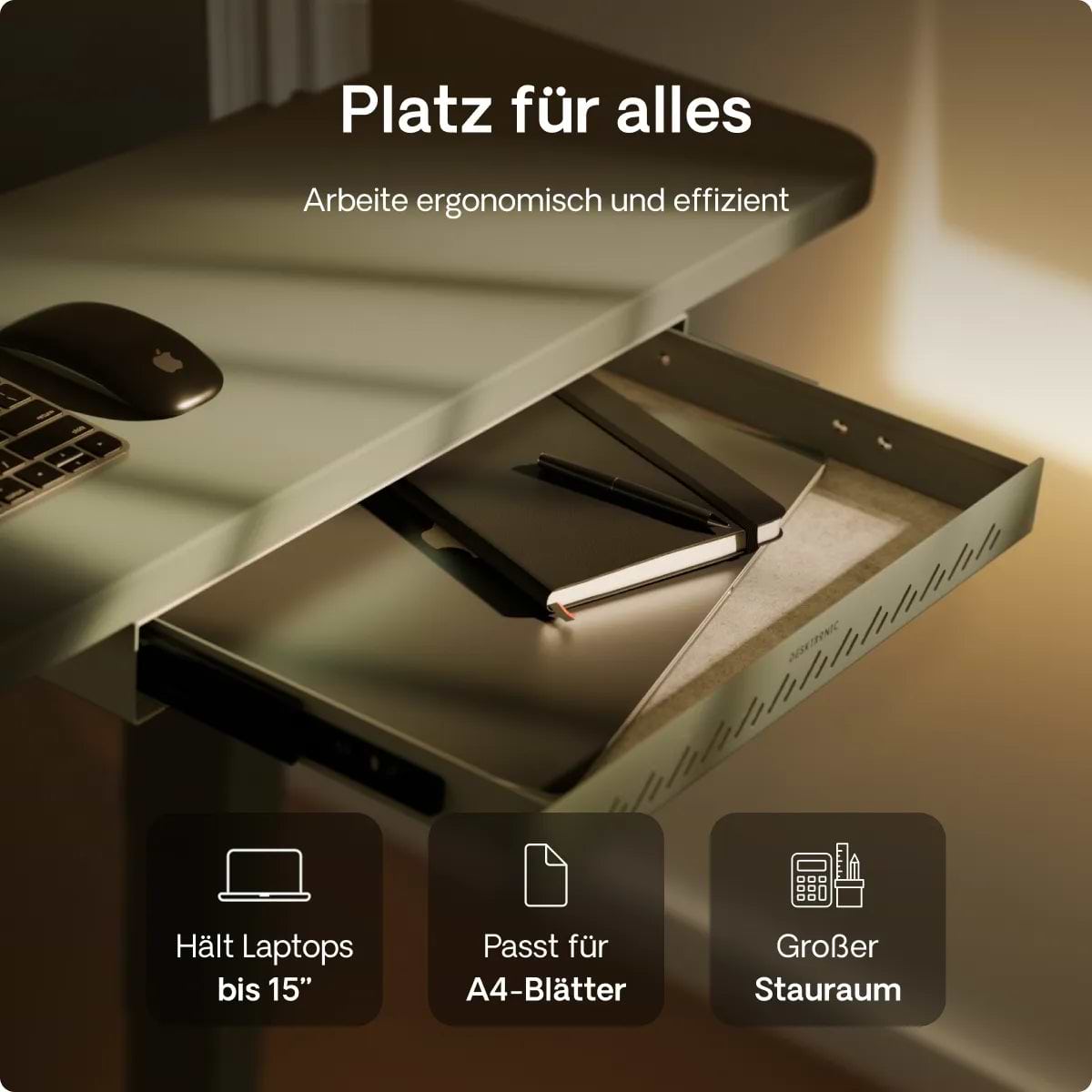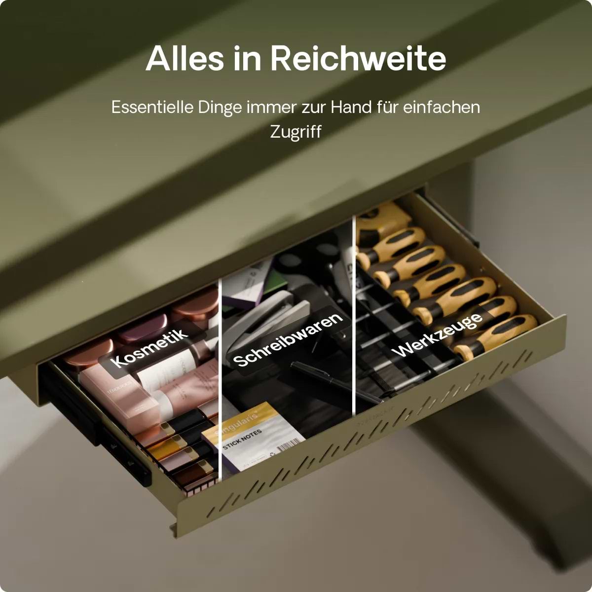 Die Schreibtischschublade wird für ihr schlankes Profil, ihre solide Metallkonstruktion und ihre sanften Schienen gelobt, die sich jedes Mal geräuschlos öffnen. Käufer schätzen den Platz, den sie f...