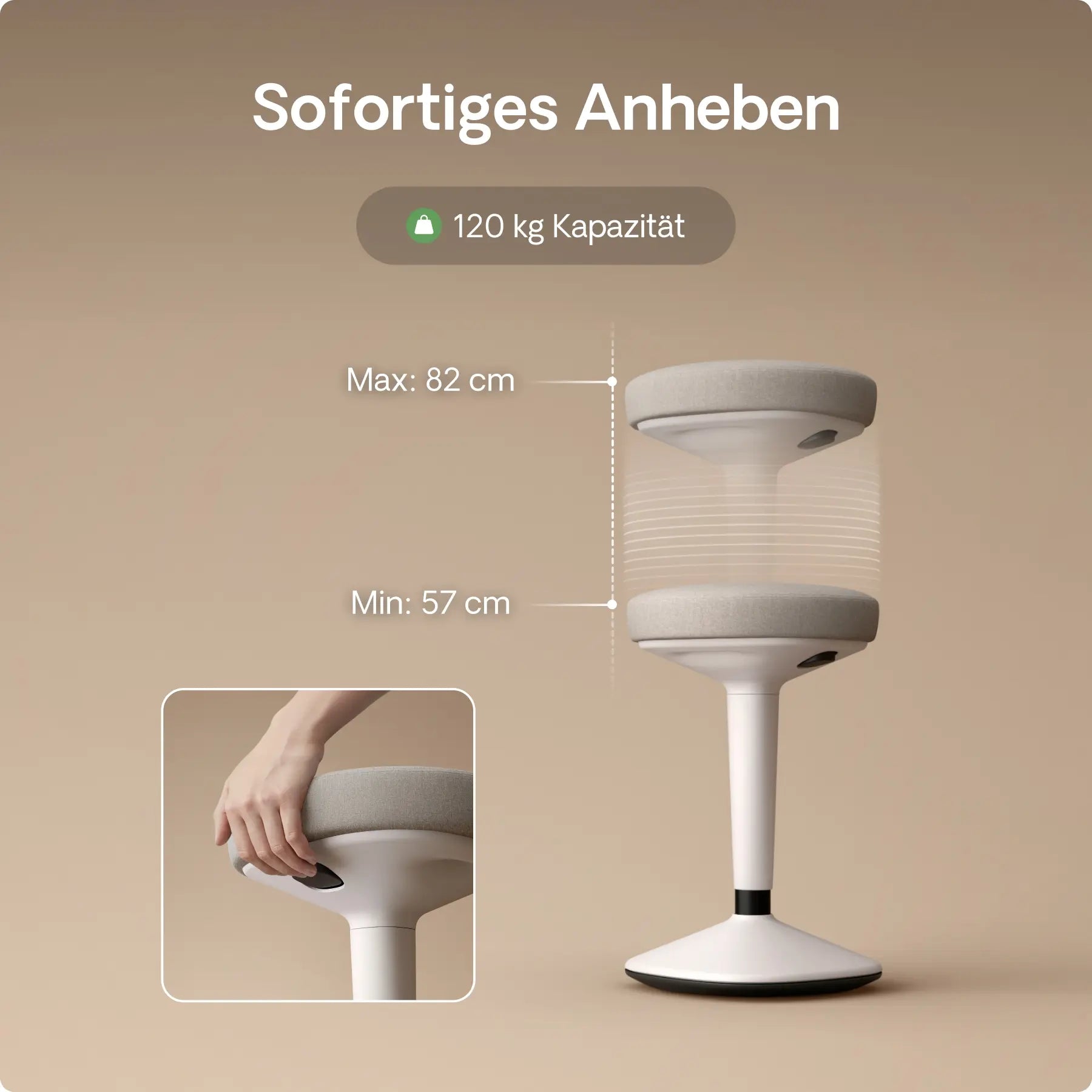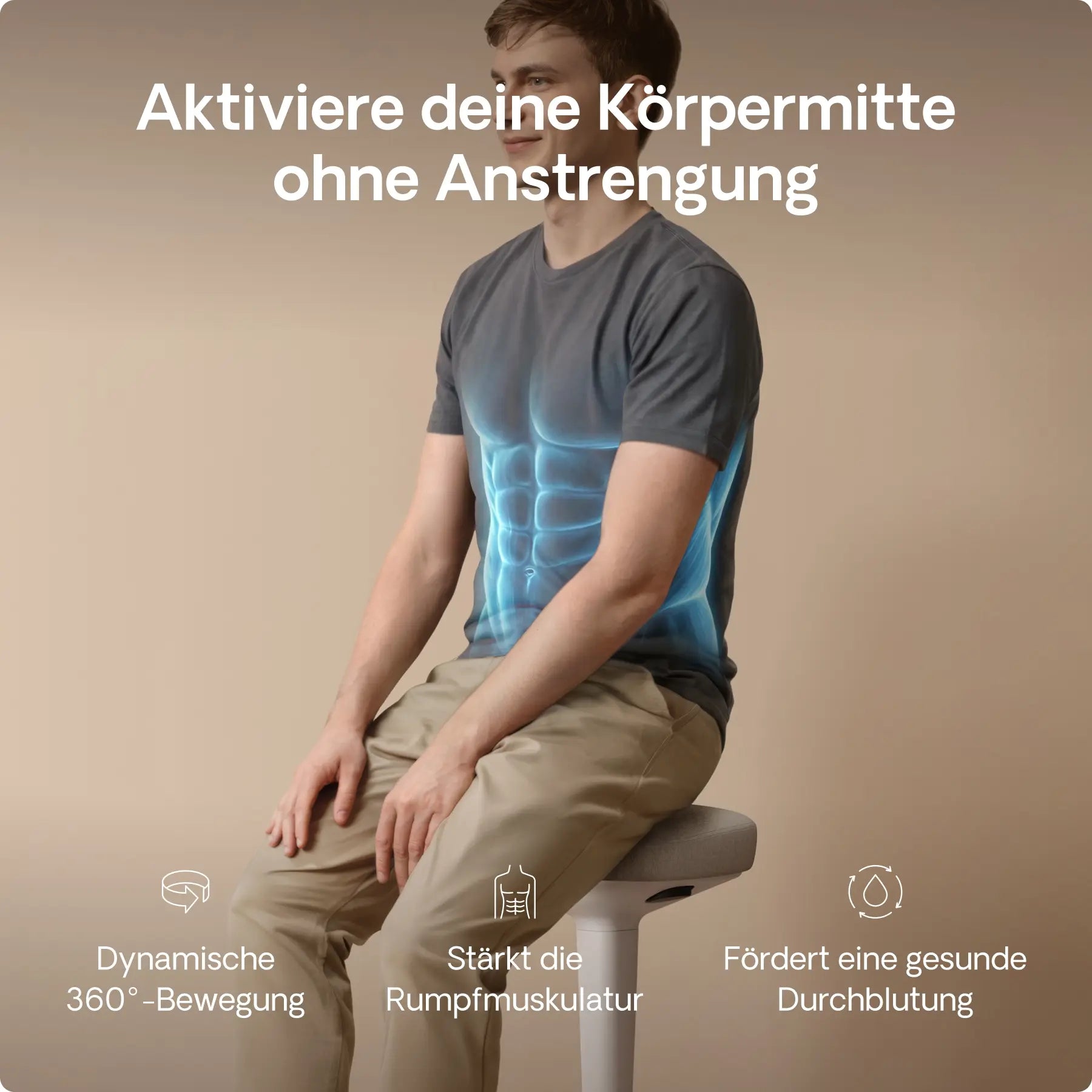 Ein Balance-Hocker, auch als Haltungshocker oder Stehhocker bezeichnet, ist ein ergonomischer Sitz mit einer abgerundeten, beschwerten Basis, der kontrollierte Bewegungen beim Sitzen ermöglicht. Sein Design fördert leichte Wippbewegungen, die deinen Körper subtil aktiv halten und eine natürliche Haltung unterstützen.